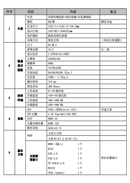 2. 智能交互平板均采用超高清真 4K 画质,显示更加清晰,画面刷新率为 60~120Hz。