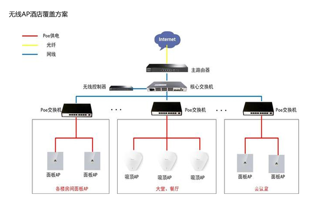 1、酒店内布局较规律,需满足各客房的无线全覆盖,无盲区;